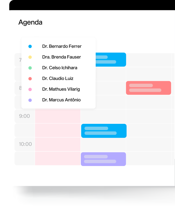 Por meio do controle de consultas, você e sua equipe podem fazer uma melhor gestão de horários, além de contarem com informações sobre últimos atendimentos, planos e convênios.